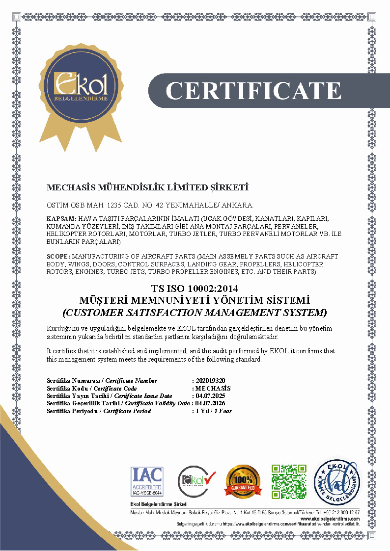 Before manufacturing new designed parts; to reach efficient, producible designs Mechasis analyze the design and prepare feasibility report for the customers. After that, the prototype produced is presented to the customers with the FAI report. After customer release, Mechasis starts to manufacturing of serial quantities.