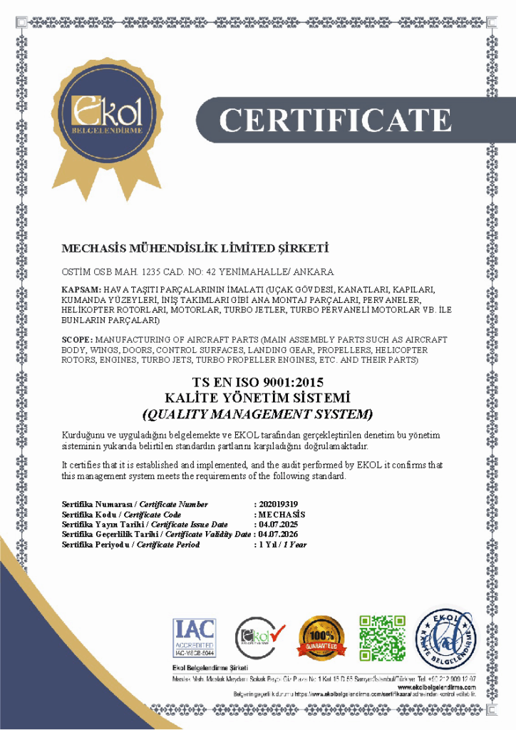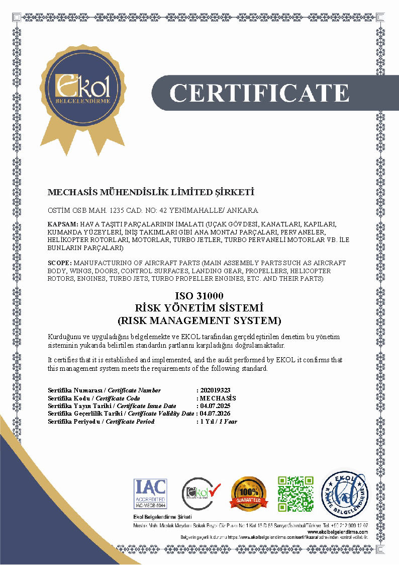 Mechasis uses an ERP software to deliver the orders on time with the required quality and apply the ISO 9001:2005 standarts. All processes such as incoming quality control, production management, supplier evaluation, quality control are carried out in accordance with ISO 9001 standards and are followed by ERP software.